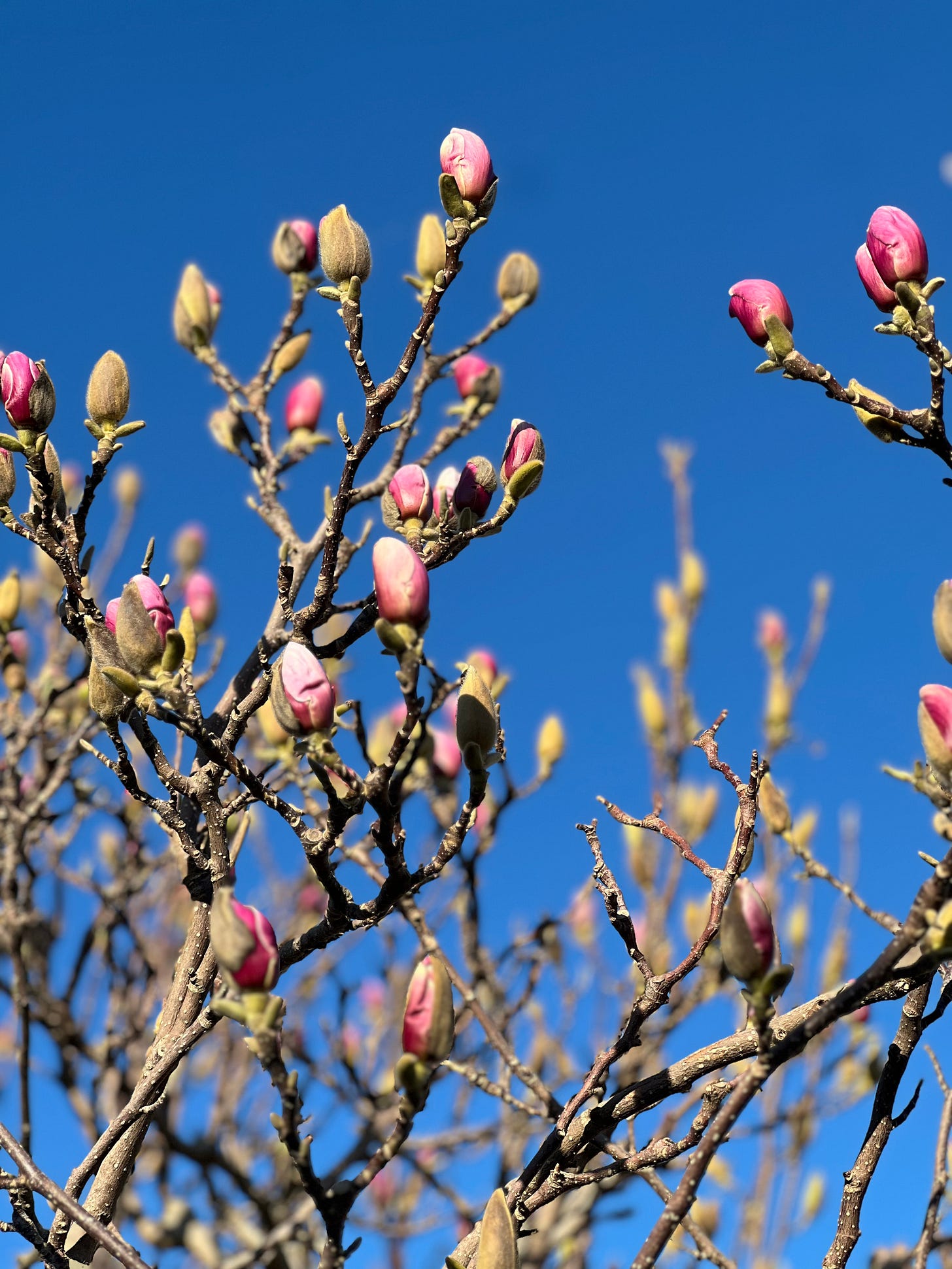 Over at the house, where the build is flying along thanks to the very considerately sunny weather (thank you, Universe), our climbing wisteria and magnolia tree are in bud, just ready to burst; violets have taken over the lawn like weeds; and I’m feeling surges of uncontrollable excitement and gratitude at the thought of enjoying this garden for years to come. The rather abandoned pond has suddenly bubbled with frogspawn, which is making me seriously reconsider our plan to fill it in for the time being. I mean, we just won’t do it now for the foreseeable because I have a serious soft spot for frogs. But can I handle the stress of having a deep, wide pond and two tinies? It’s a conundrum. We shall see. Stay tuned, if you’re invested in the destiny of our pond.